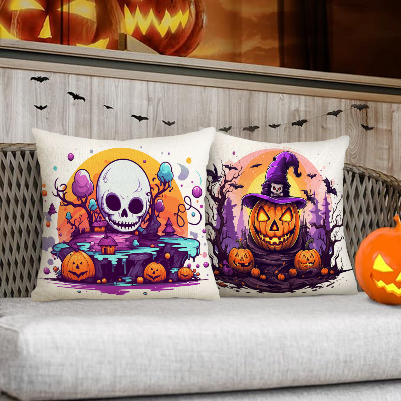 Add a unique charm to your Halloween party with our Skull and Pumpkin Linen Pillowcases, the perfect choice for living room decor. Made from natural linen, they offer an elegant texture while ensuring breathability and comfort. The clever combination of skull and pumpkin patterns not only fits the festive atmosphere but also shows a distinctive sense of style.